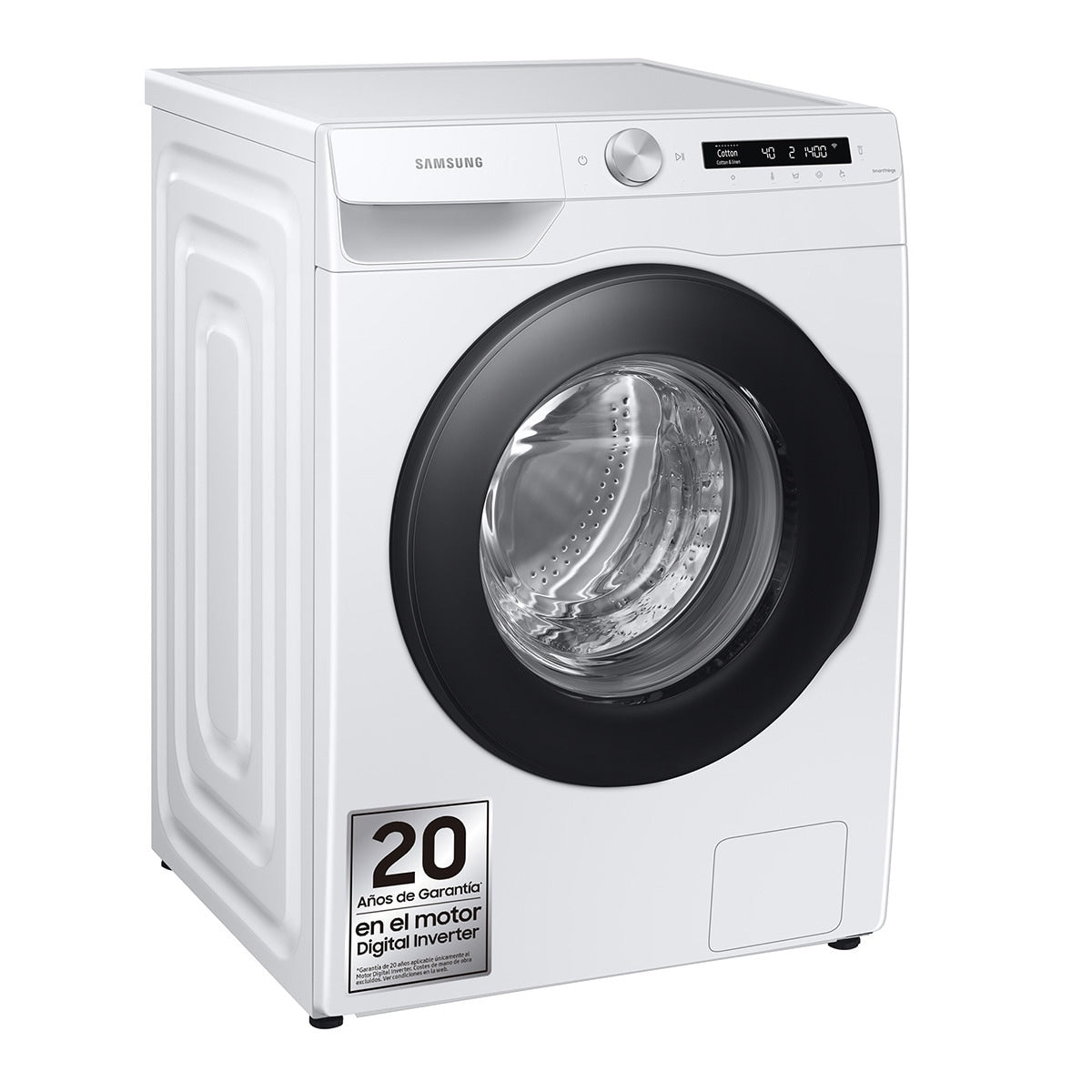La lavadora Samsung WW90T504DAWCS3 de carga frontal y libre instalación, ofrece una capacidad de 9 kg y una velocidad máxima de centrifugado de 1400 rpm. Equipado con el avanzado motor Digital Inverter, esta lavadora asegura un funcionamiento eficiente, silencioso y duradero. Su diseño elegante en color blanco con puerta negra combina perfectamente con cualquier hogar.